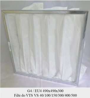 Taschenfilter der Klasse G4 / EU4, Abmessungen 490 x 490 x 300 mm, in einem Metallrahmen, passend zu VTS-AHUs: VS 40 VS 100 VS 150 VS 300 VS 400 VS 500 Filter sind Ersatz, Hersteller- und Markennamen wurden zur Identifizierung des Produkts verwendet.